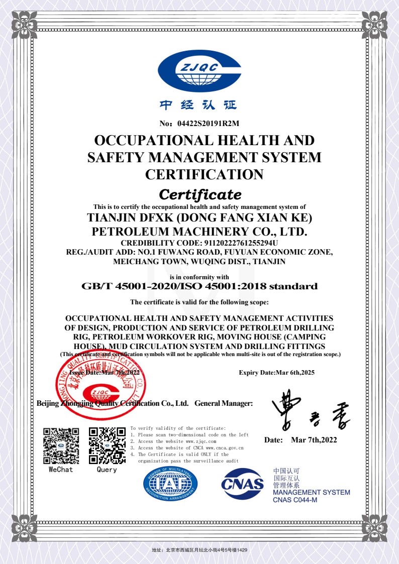 職業健康安全管理體系認證證書英文